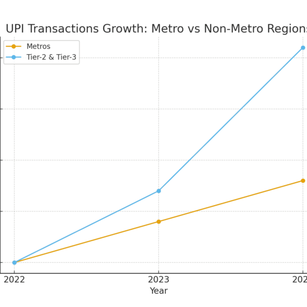 - UPI transactions outside metros grew by 118% YoY in 2024 (NPCI).